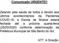 Escola de Música estará fechada até a próxima quarta-feira (25/03/2020)