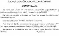 Agradecemos a compreensão de todos!!! Direção Escola de Música Donaldo Ritzmann. 08/04/2020