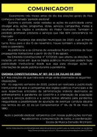 Com a mudança das eleições municipais de 2020, cujo primeiro turno ficou para o dia 15 de novembro, houve também a alteração de todo o calendário. As prefeituras e as câmaras de vereadores ficam proibidas de fazer propaganda institucional a partir do dia 15 de agosto.